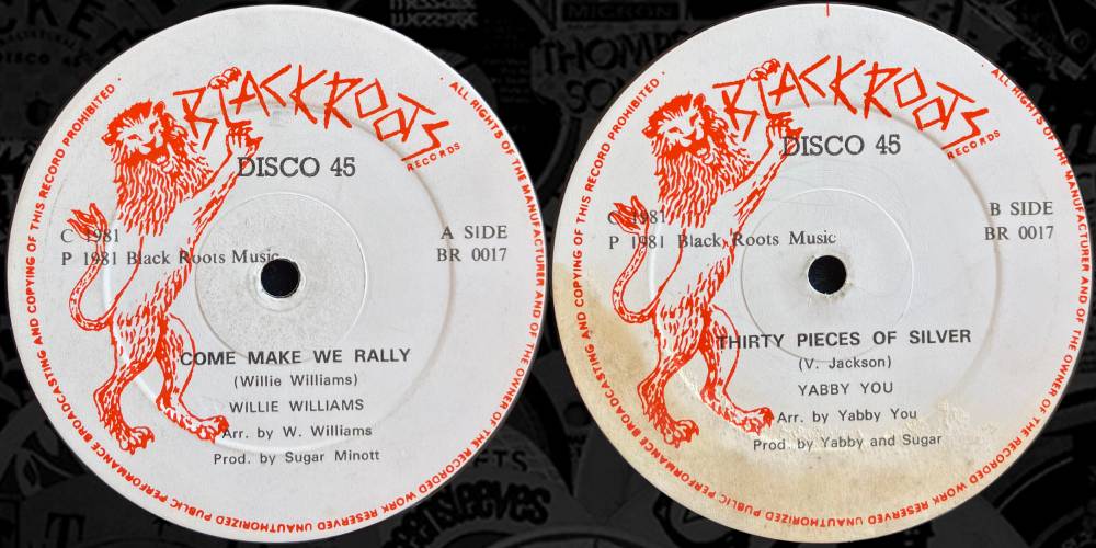 Willie Williams – Come Make We Rally Yabby You – Thirty Pieces Of Silver Black Roots (BR 0017) UK 1981 EX+ Produced by Sugar Minott / Yabby You & Sugar Minott terrible double sider, two incredible roots titles actually both are yabby you ridms