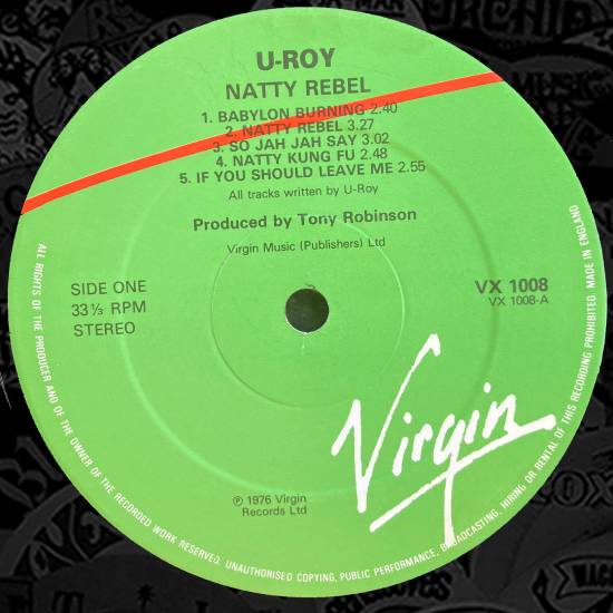 U Roy – Natty Rebel – Virgin UK 1976 cov : EX / rec : EX price : 10 euros Produced by Tony Robinson 1983 Issue during the crucial cuts series |