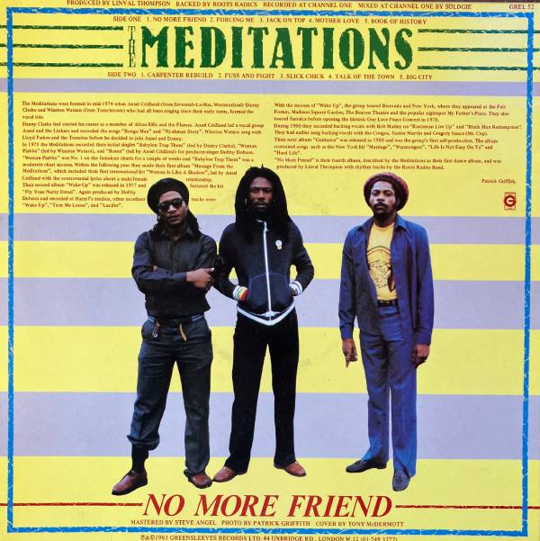 Meditations – No More Friend – Greensleeves (GREL 52) UK 1983 cov : EX / rec : EX price : 15 euros Produced by Linval Thomspon Original UK issue, backed by Roots Radics |