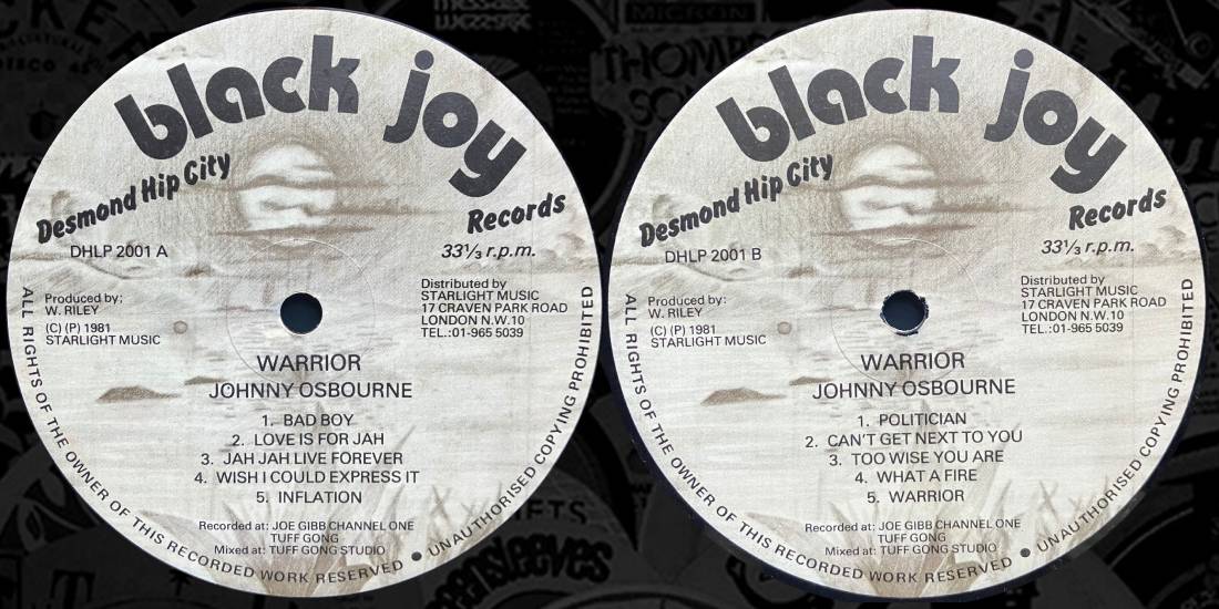 Johnny Osbourne – Warrior – Black Joy UK 1981 cov : NC / rec : EX- price : 25 euros Produced by Winston Riley great LP original UK issue, unfortunately no cover |