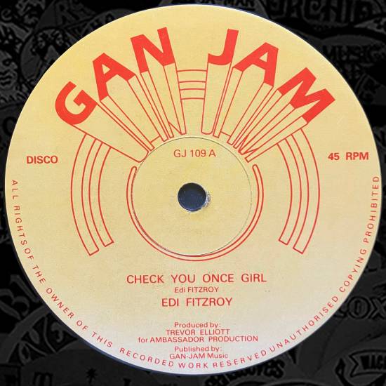 Edi Fitzroy – Check You Once Girl Gan Jam UK 1982 VG+ to EX- price : 10 euros Produced by Trevor Elliott backed by Roots Radics |
