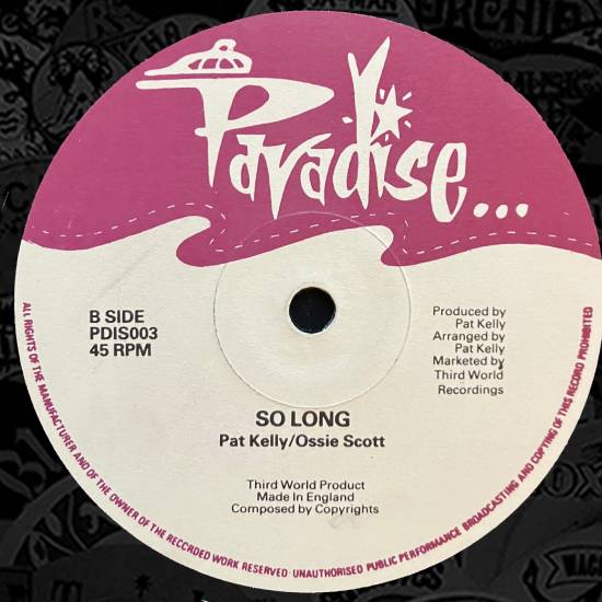 Pat Kelly & Ossie Scott – So Long Gene Rondo – Golden Love Paradise UK 1979 EX price : 6 euros Produced by Shelley Aggrovators backing and mix at Tubby’s with saxophone extended play |