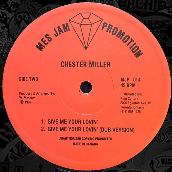 Don Angelo – Don’t Move A Muscle Chester Miller – Give Me Your Loving Mes Jam Promotion CAN 1987 EX+ price : 7 euros Produced by W.Messam 80’s canadian stuff distributed by King Culture |
