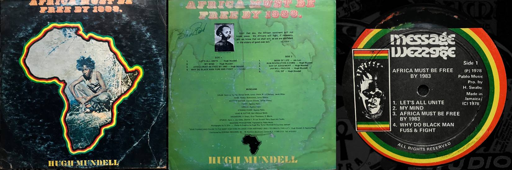 Hugh Mundell – Africa Must Be Free By 1983 - Message (DSR 6952 DT) JAM 1978 cov : VG / rec : EX+ Produced by Horace Swaby A roots monument, the collaboration of Mundell with his mentor, Augustus Pablo… the sleeve has water damage but the vinyl is pristine mint, except a slight 10 seconds clicking mark at the very end of the track day of judgement (nothing heavy)... original first JA issue with correct matrix number, labels designs, and more very dark blue than black front sleeve colour current leading price : 33 euros (2 bids)