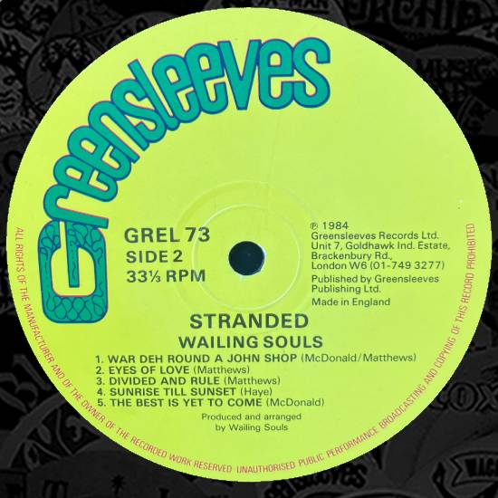 Wailing Souls – Stranded – Greensleeves (GREL 73) UK 1984 cov : EX / rec : EX price : 15 euros Produced by Wailing Souls Already the sound of the mid 80’s, but the ridims are killer |