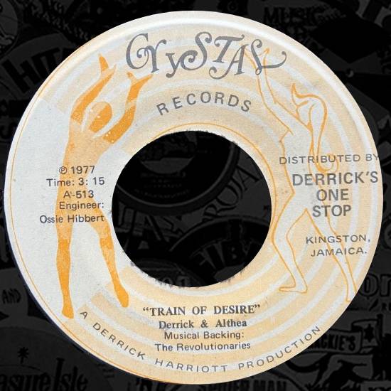 Derrick & Althea – Train Of Desire / Version Crystal JAM 1977 VG+ to EX- / EX- price : 6 euros Produced by Derrick Harriott backed by Revolutionaries with Ossie’s mix |